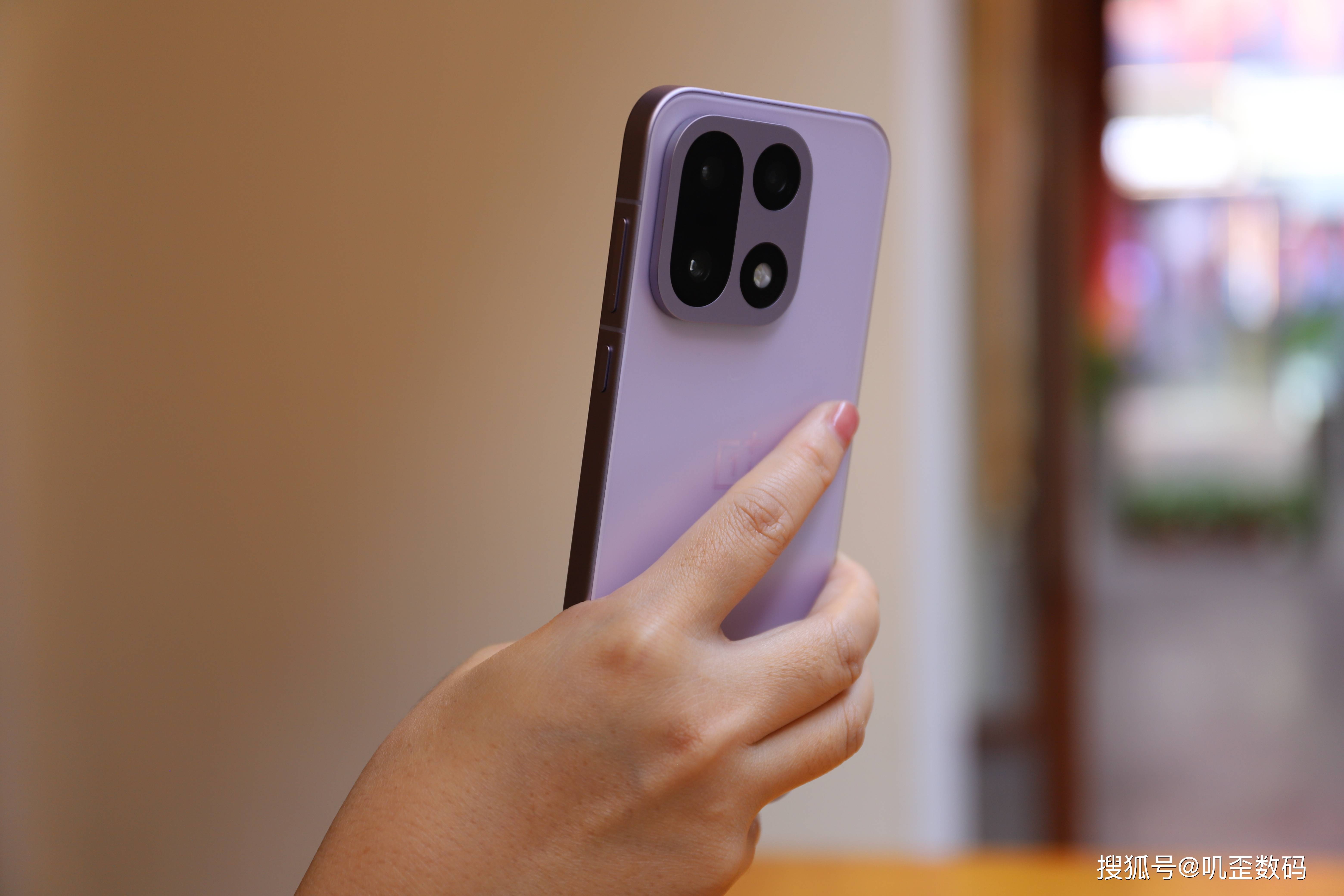 我们所体验的这款一加15是雾光紫配色,上手的那一刻就能够感受到它的精致,这种低饱和度的紫色,配合丝绒玻璃材质的后盖,在光线的照射下会有流光溢彩的视觉效果,上手之后真的非常漂亮。