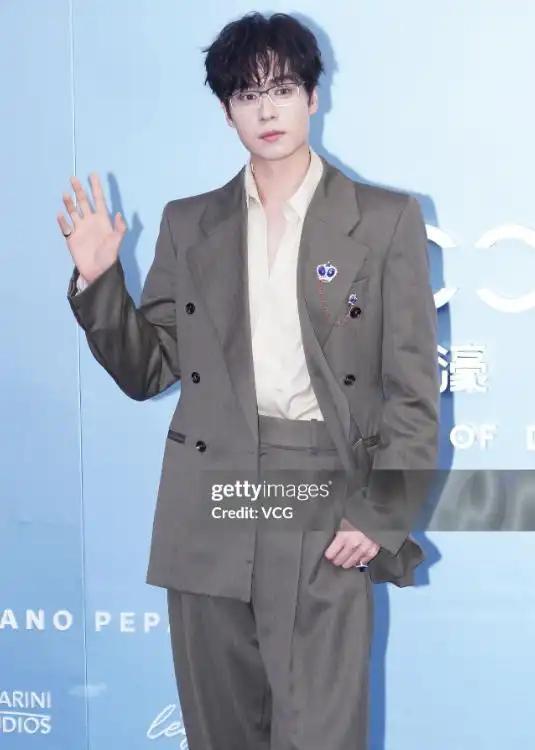 在此次活动当中,胡一天以品牌大使的身份出现在红毯之上,他身着铅灰色的西装,同时搭配着无框眼镜,其胸口位置的克莱因蓝皇冠胸针十分惹人注目,他有着卷发造型,这一造型进一步增添了他温柔的气质,整体形象显得清俊且又儒雅。