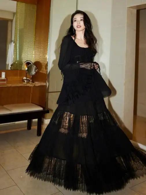 相与比之,她的这一套钻饰镂空刺绣裙装看上去就舒适许多,加以水幕搭配,整个人愈发自身带有高贵气质,美得无法用言语形容。