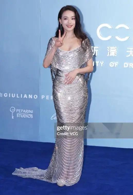 她身着银色亮片礼裙,礼裙勾勒出她窈窕的身段,她领口低胸,低胸领口将傲人的事业线半遮半掩,她搭配着性感的波浪长发,整体不过分暴露,呈现出媚而不妖的气质,还有艳而不俗的风味 。
