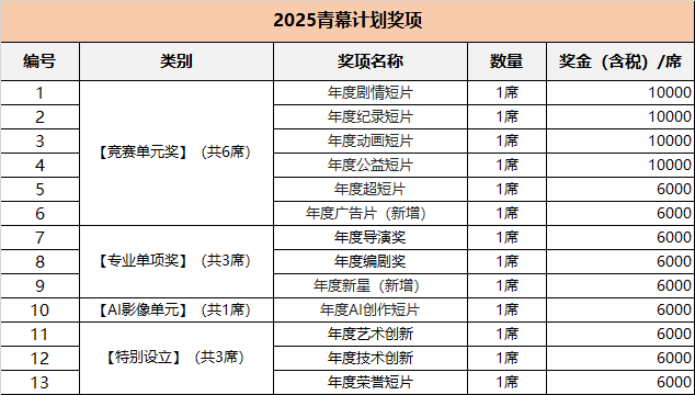 【专业单项奖】、【特别设立奖】将会在入围影片中以各奖项标准择优选出,无需参赛者重复投递或单独报名。