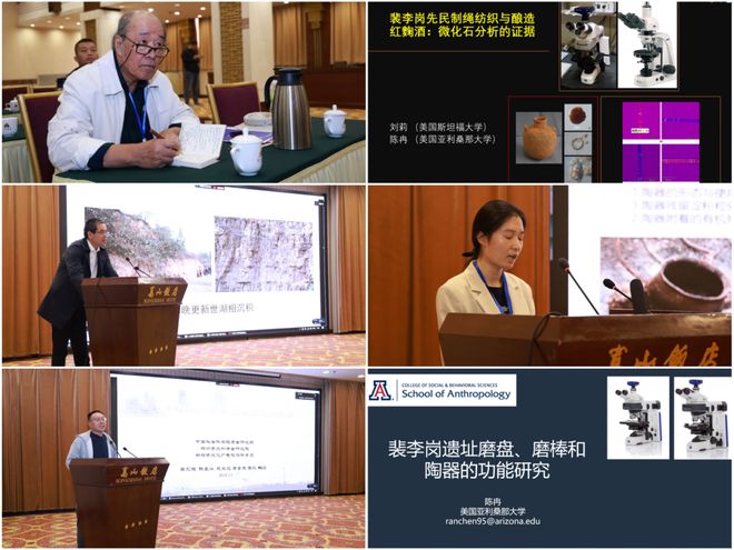 斯坦福大学东亚语言与文化系刘莉教授就《裴李岗纤维和酿酒技术》进行报告。通过残留物及微痕分析,从墓葬中辨识出一组与纺织加工相关的工具组合,认为裴李岗先民已经掌握了制绳、纺织和制衣技术,并且可能利用植物进行染色。对墓葬出土陶壶的分析表明,裴李岗时期利用红麹霉和大米发酵制麯酿酒,并用于日常生活及丧葬仪式中。在西亚旧石器晚期墓葬中也发现类似的遗存,表明酒在仪式行为中的使用是一种世界性现象。
