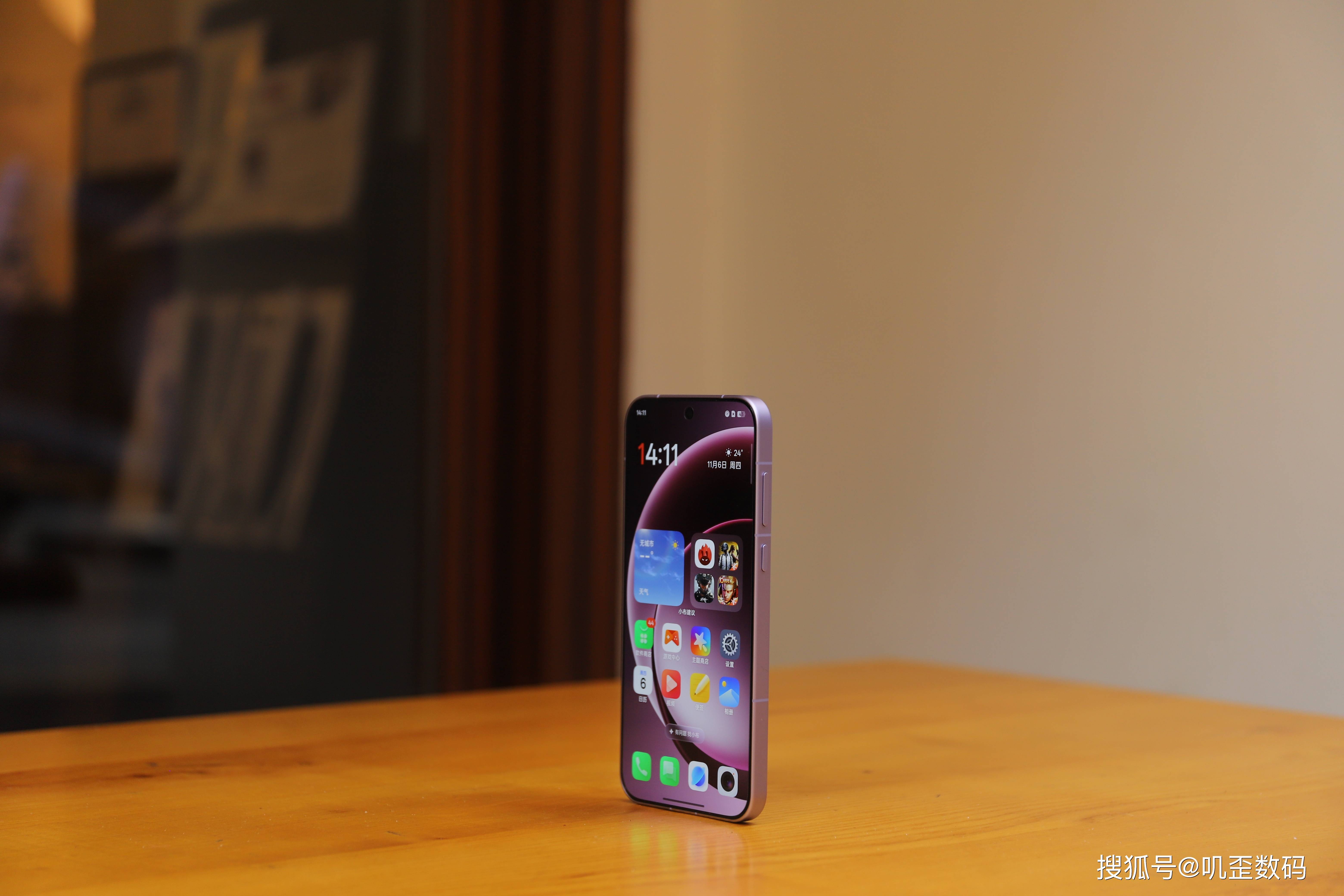 我们所体验的这款一加15是雾光紫配色,上手的那一刻就能够感受到它的精致,这种低饱和度的紫色,配合丝绒玻璃材质的后盖,在光线的照射下会有流光溢彩的视觉效果,上手之后真的非常漂亮。